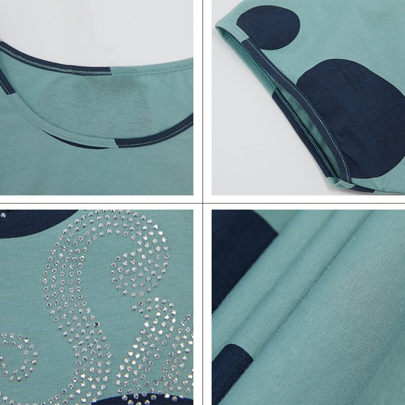 🌞 Lorsque les températures grimpent, il est temps de sortir le T-shirt d’été pour femmes Astrid. Ce vêtement féminin en coton 2023 à pois avec un motif papillon et des diamants 🦋💎 est l’allié parfait pour rester élégante tout en étant confortable. Sa composition en coton lui confère une douceur incomparable sur la peau, idéale pour les journées chaudes.