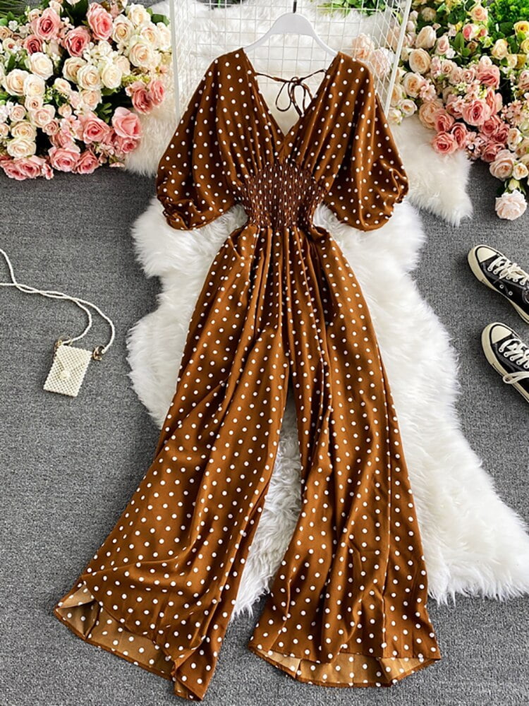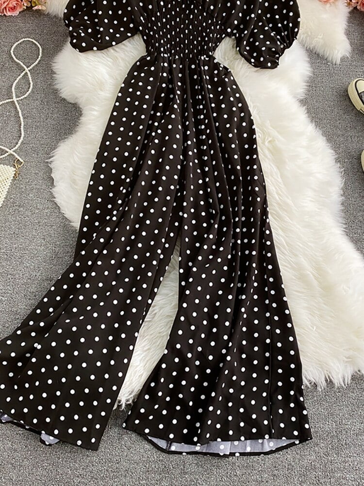 Préparez-vous à faire tourner les têtes avec cette Barboteuse À Pois Sexy, Col V, Manches Courtes, Taille Haute. Vous savez ce soir où vous avez trébuché sur vos talons hauts ? C’était sûrement parce que vous ne portiez pas cette barboteuse ! 😅 Et ces moments de doute avant une grande soirée ? Oubliez-les : avec son col V et sa taille haute, elle est la définition même du chic décontracté. Quant à vos ennemis… Eh bien, ils seront trop occupés à être jaloux de votre style impeccable pour causer des problèmes. Alors n’hésitez plus et offrez-vous le look sexy et sans effort dont vous rêvez depuis toujours ! 💃🔥