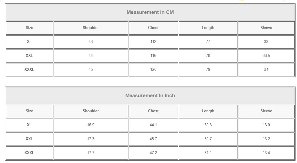 XXXL | 45 | 120 | 79 | 34 |