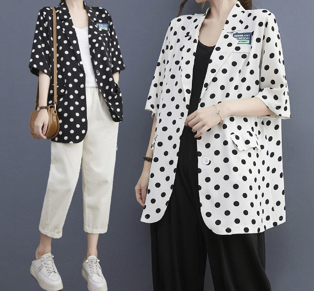 Ne laissez pas passer cette occasion de vous démarquer avec ce blazer à pois.💟 Commandez-le produit dès maintenant et faites sensation où que vous alliez!
