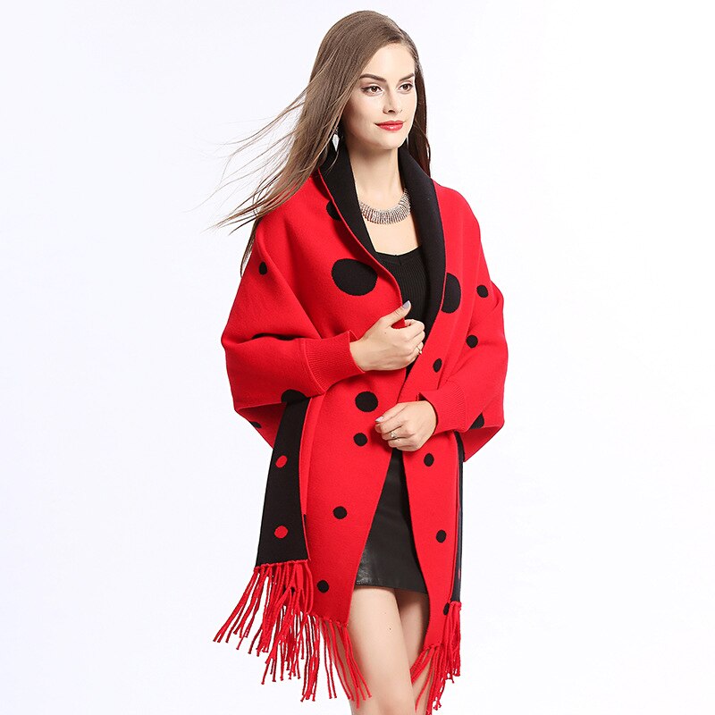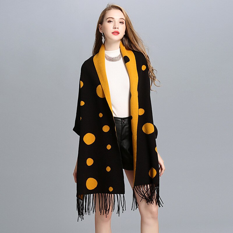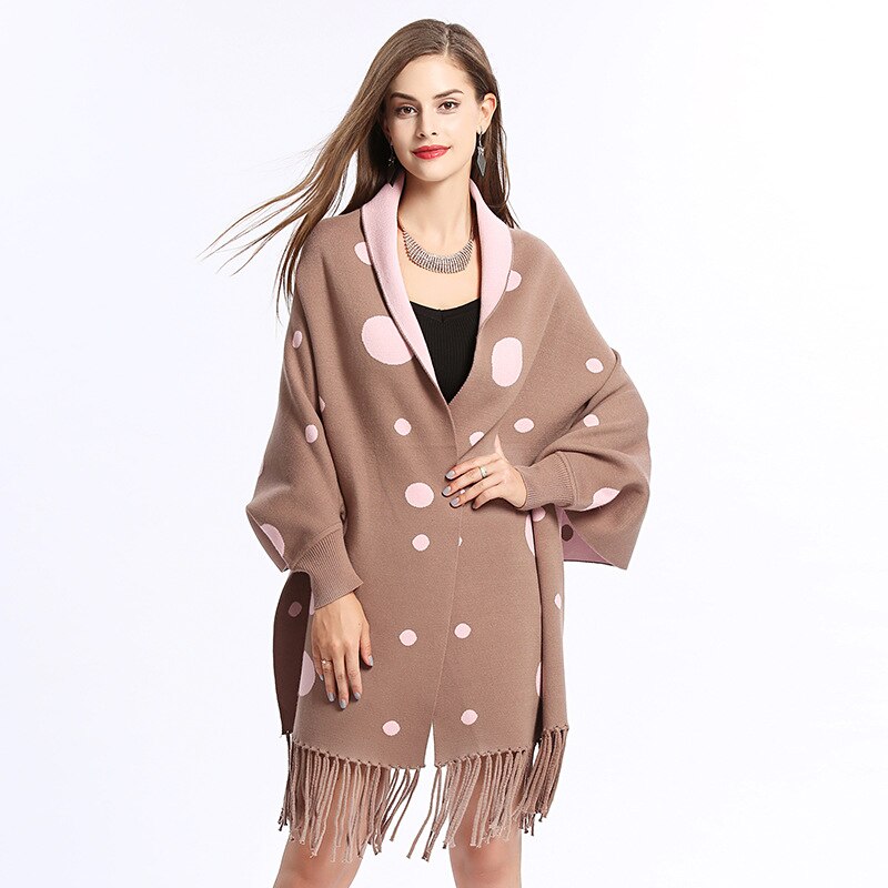 Ne laissez pas cette opportunité passer, commandez dès maintenant votre cape poncho tricot femme double face motif pois et soyez la collection reine du style produit cet hiver !