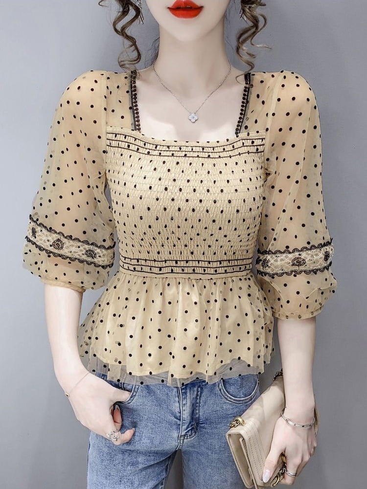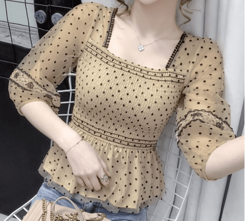 Fini les journées de bureau ennuyeuses avec ce chemisier à manches longues en mousseline de soie, qui transforme chaque jour en un défilé de mode. 🎀 Vous n’avez pas réussi à terminer votre présentation ? Ne vous inquiétez pas, c’est sûrement parce que tout le monde était distrait par votre magnifique chemise perlée. Les imprimés à pois sont là pour chasser vos peurs d’être trop formelle et ajouter une touche ludique à votre tenue. Et si quelqu’un ose critiquer votre sens du style, rappelez-vous simplement qu’ils sont probablement jaloux de ne pas avoir eux-mêmes cette pièce unique dans leur garde-robe.