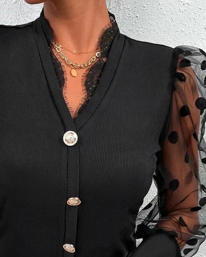 Avec ce chemisier en dentelle transparente pour femmes, vous serez la reine de la séduction, même si votre dernier flirt remonte à l’époque où les dinosaures peuplaient encore la Terre. 🦖 Ne cherchez plus d’excuses à vos échecs amoureux : c’est simplement parce que vous n’aviez pas encore cette pièce maîtresse dans votre garde-robe ! Quant aux peurs irrationnelles de ne pas être assez attirante, elles seront balayées comme une toile d’araignée au vent. Et pour celles qui doutent encore du pouvoir de ce haut sexy imprimé à pois et patchwork décontracté avec manches longues et boutons… Eh bien, il est temps de jeter un pavé dans leur mare ! Alors mesdames, qu’attendez-vous ? Faites chauffer la carte bleue et offrez-vous le tunique d’été qui fera tourner toutes les têtes ! 💳💃🔥