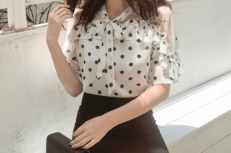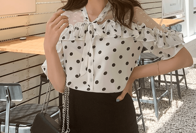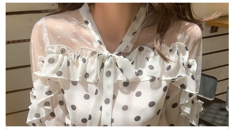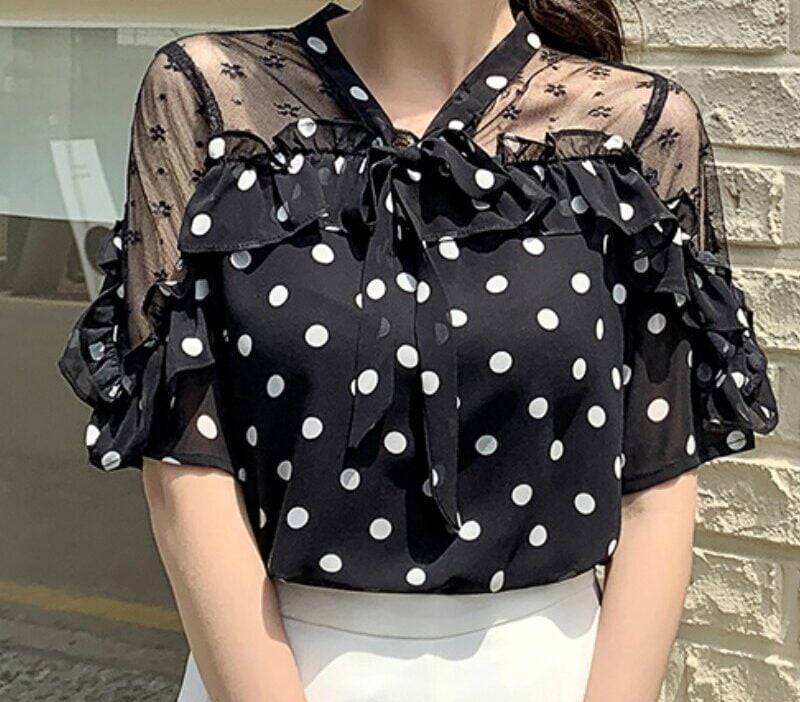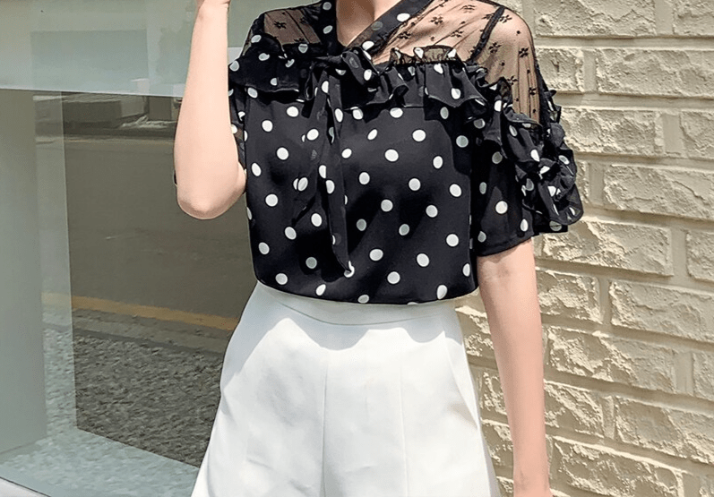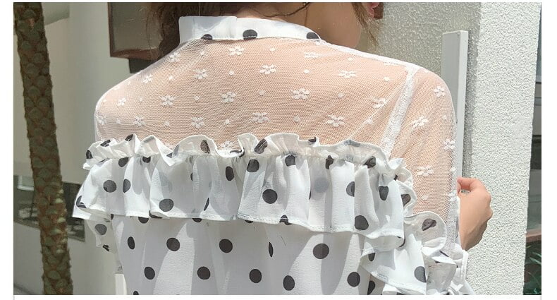 Soyez le premier à laisser votre avis sur “Chemisier Mousseline Élégante Volants Dentelle Pois”