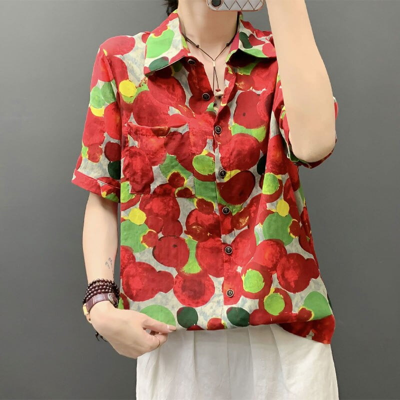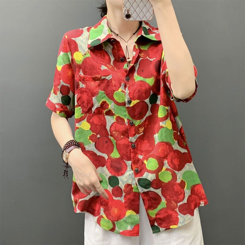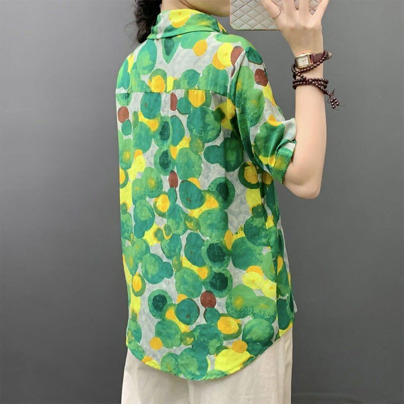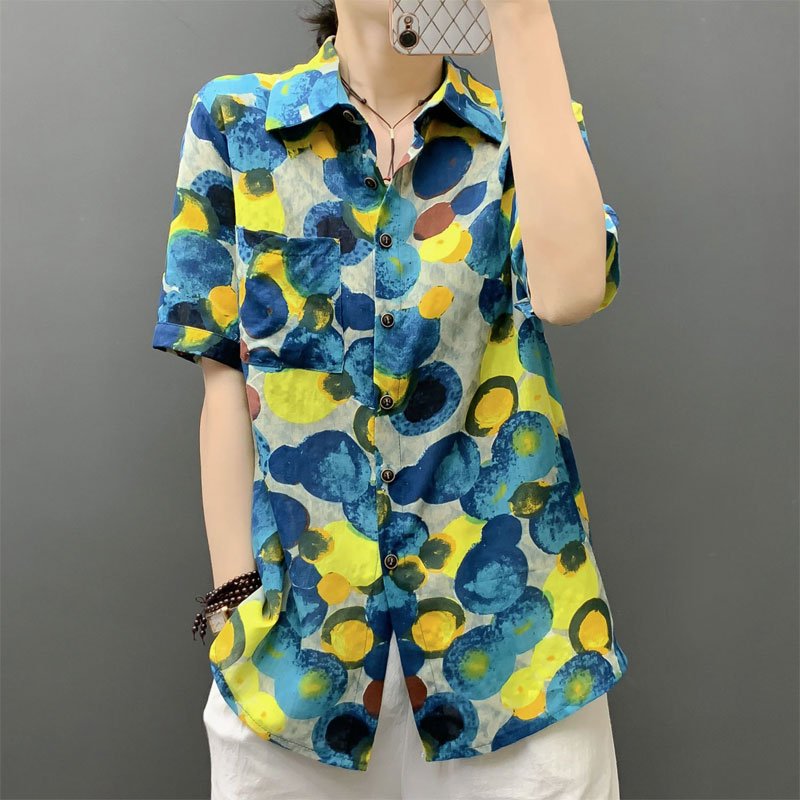 Découvrez le chemisier imprimé à pois pour femme, une pièce phare de la mode streetwear. 🎉 Avec son simple boutonnage et ses manches courtes, ce vêtement est idéal pour l’été. Son col rabattu lui confère une allure décontractée tout en restant chic.