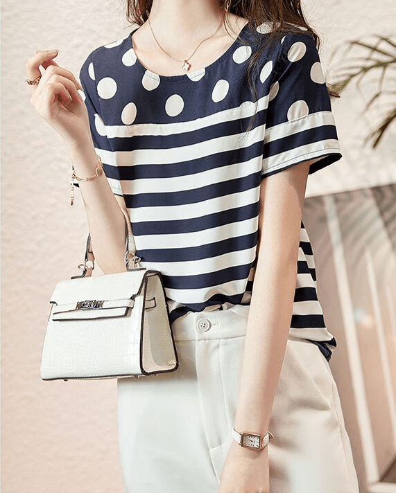 Avec ce chemisier rayé à pois à manches courtes pour femmes, vous serez la reine de la séduction, même si votre dernier rendez-vous a confondu le restaurant chic avec un fast-food. 🍔👸 Pas de panique ! Ce pull décontracté est là pour effacer tous vos échecs vestimentaires passés et réduire vos peurs d’être mal habillée lors du prochain apéro entre amis. Et si quelqu’un ose critiquer votre style, rappelez-lui simplement que c’est vous qui portez une chemise assortie imprimée épissée nouvelle mode et pas lui ! Alors mesdames, prêtes à jeter symboliquement la pierre aux fashion faux-pas ? 💪💃 N’attendez plus : ajoutez cette merveille à votre garde-robe estivale dès maintenant et faites tourner les têtes sur votre passage !