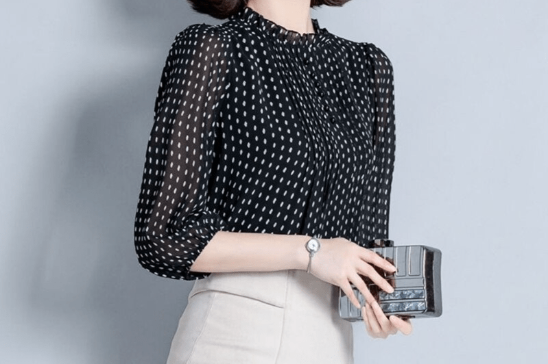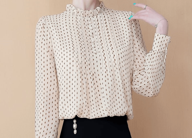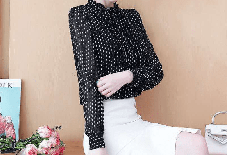 Avec ce chemisier en mousseline de soie à motifs pois, vous serez la reine du jeu de séduction. 🎲💋 Vous avez raté votre dernier rendez-vous ? Pas d’inquiétude, c’était sûrement parce que vous ne portiez pas ce chemisier ! 👗🙈 Les peurs d’être mal habillée seront désormais un lointain souvenir grâce à cette pièce chic et tendance. Et pour ceux qui doutaient encore de votre sens du style, ils n’auront qu’à jeter un œil sur vous dans cette tenue pour se raviser. Alors mesdames, prêtes à faire des jalouses ? 💃🔥