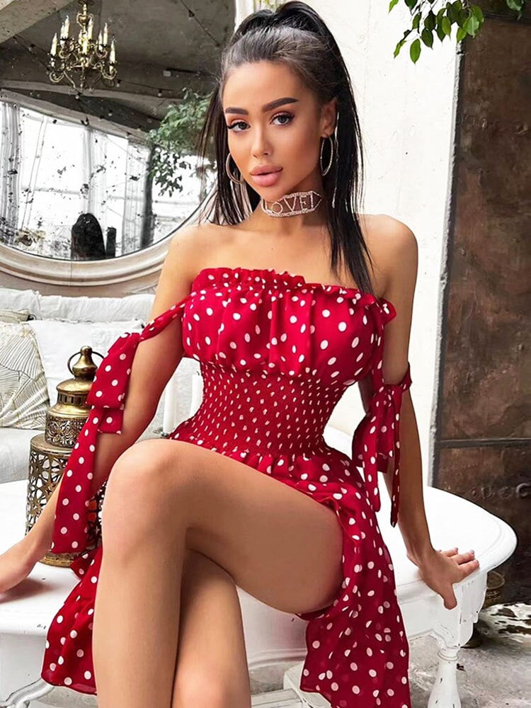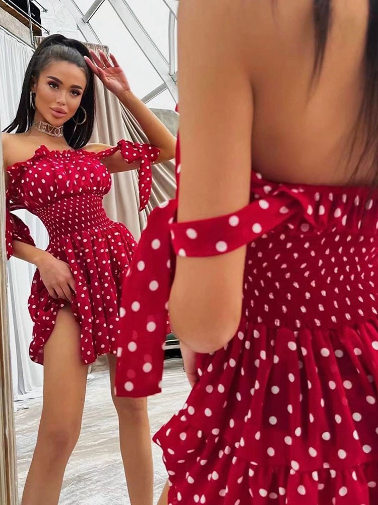 1 avis pour Robe D’Été Froncée Pois Rouges