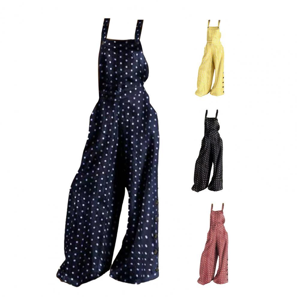 Les caractéristiques de cette combinaison comprennent un dos nu, des bretelles, des boutons décoratifs et des poches, ce qui lui confère un look décontracté et élégant.