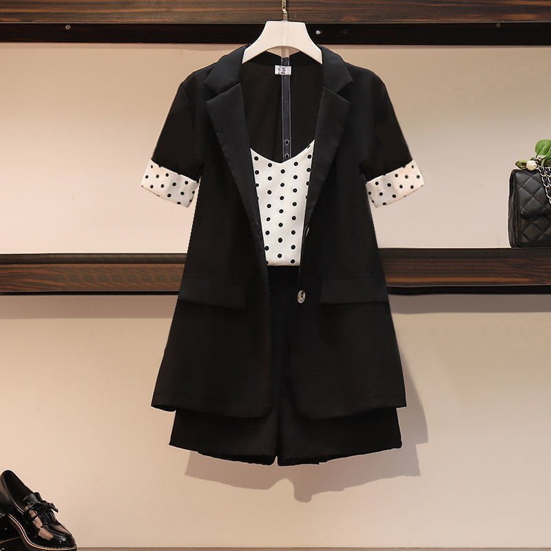 Découvrez une allure irrésistible avec cet Ensemble Court Femme Pois Motif Blazers.😍 Que ce soit pour une occasion spéciale ou pour une journée décontractée, il vous offre une tenue parfaite en toutes circonstances.