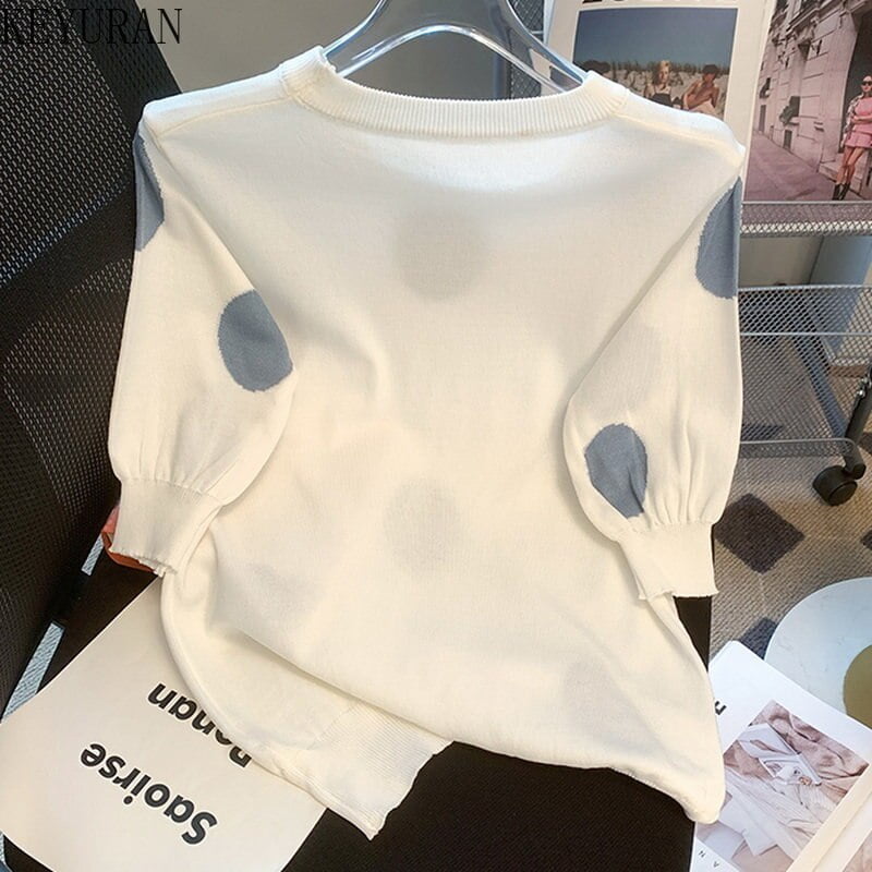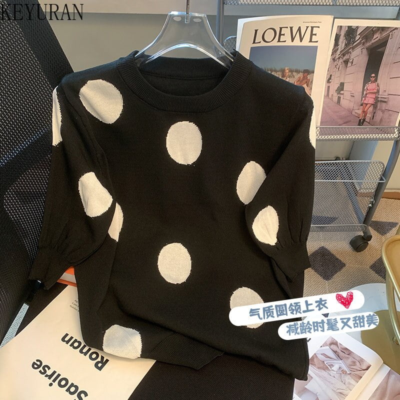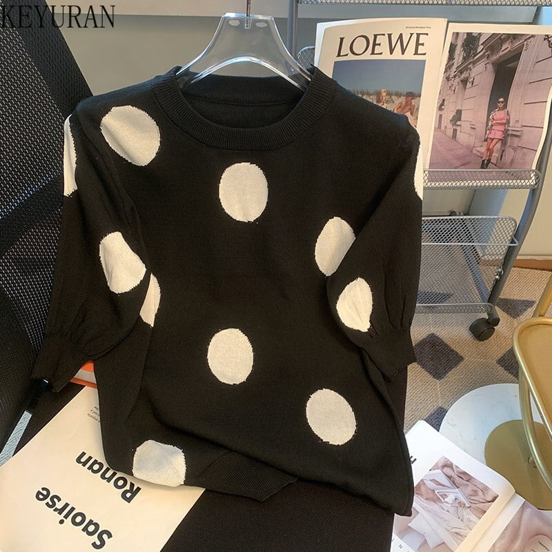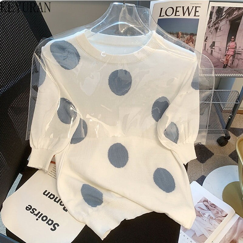 Exprimez votre féminité avec ce haut tricoté à pois et soyez prête à conquérir le monde de la mode. Cliquez maintenant pour obtenir ce vêtement incontournable produit et devenez la collection reine du style.