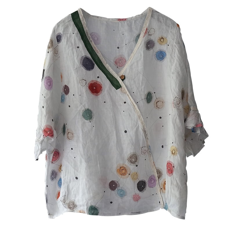 Avec ce t-shirt vintage à pois, vous serez la reine du bal, même si votre danse ressemble plus à un canard boiteux qu’à une gazelle gracieuse. 🦆💃 Pas de panique, les manches évasées sont là pour cacher vos bras qui ont tendance à voler dans tous les sens. Et puis, le col en V est tellement profond que personne ne remarquera votre peur de monter sur scène. Enfin, avec son patchwork ramie unique et audacieux, il est l’arme parfaite pour faire des jaloux et jeter symboliquement la pierre à ceux qui osent critiquer votre style vestimentaire ! Alors n’hésitez plus et offrez-vous cette pièce d’été indispensable avant qu’elle ne disparaisse des rayons ! 😎👚