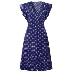 La robe à pastilles avec fente est l’un des formes de vêtements très tendance cette année. 🎀 En effet, de trop nombreux blogueuses et certaines expertes de la tendance recommandent d’en avoir une dans sa garde-robe et ceci n’est pas banal. En effet, avant d’être à pois, celle-ci est d’abord une robe, un segment inéluctable du quotidien féminin. En conséquence, le fait la Robe longue a pois manches a volants incorpore des pastilles la rend carrément plus singulière, car c’est une mode qui ne fait que réapparaître. 🎁 Si vous vous demandez pour vraiment être fashion cette période quel genre de robe tendance à pois il vous faut, alors, pariez sur notre robe de cocktail courte à pois blanc, cette dernière est la grande chanceuse.