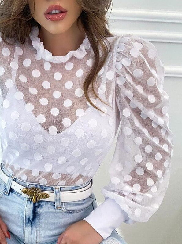 Préparez-vous à faire tourner les têtes avec ce T-Shirt Transparent à manches longues pour femmes, aussi sexy qu’un rendez-vous au clair de lune. 🌙 Vous n’avez pas réussi à séduire lors de votre dernier rencard ? Pas d’inquiétude, c’est sûrement parce que vous ne portiez pas ce haut en maille transparente ! Les peurs d’être invisible dans la foule s’évanouissent comme par magie grâce aux pois scintillants qui attirent tous les regards. 👀 Et si quelqu’un ose encore douter de votre sens du style, laissez-les baver devant votre silhouette slim mise en valeur par cette nouvelle collection. Alors mesdames, prêtes à jeter un pavé dans la mare et faire des jalouses ? 💅 N’attendez plus une seconde et offrez-vous le pouvoir de séduction ultime !