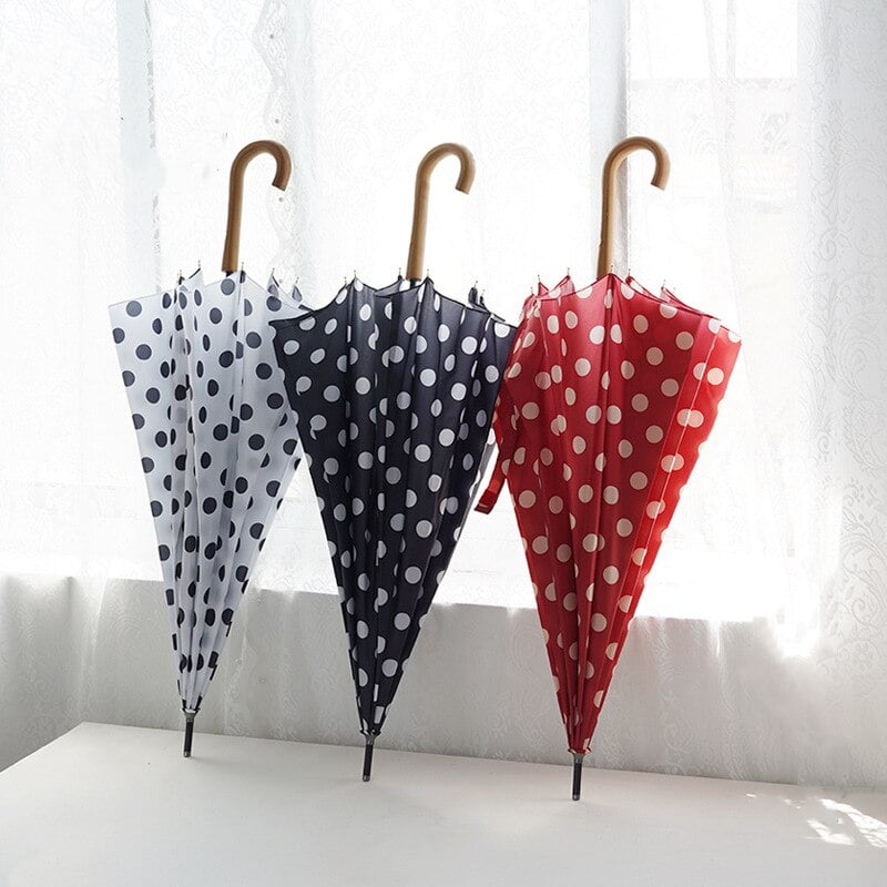 4. Style intemporel : Le motif à pois est un classique indémodable qui ajoute une touche de chic à n’importe quelle tenue.☀️ Vous serez toujours à la pointe de la mode avec ce parapluie.