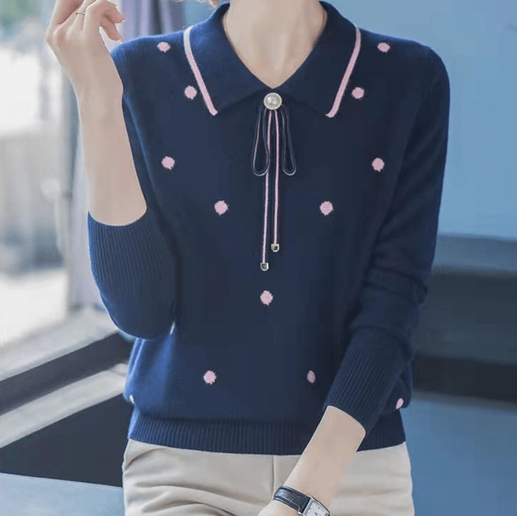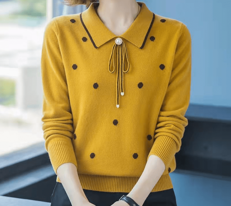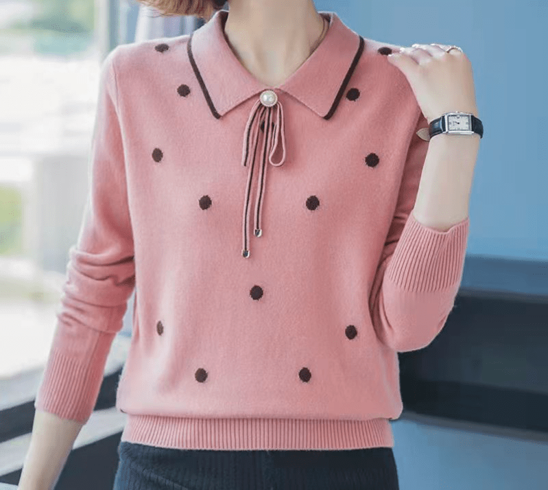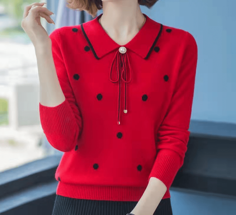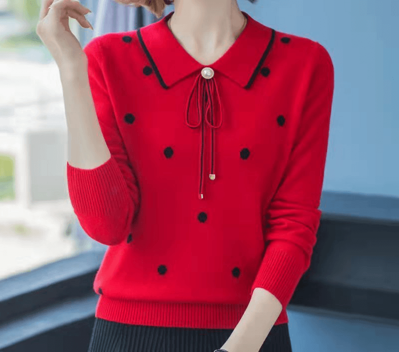 Chez Coccinelle-Paradis, nous accordons une grande importance à la qualité de nos produits.♚ Chaque pièce est soigneusement sélectionnée pour vous offrir une expérience de shopping exceptionnelle. Le Pull Motif Pois Manches Longues en est la parfaite illustration, alliant luxe, raffinement et confort.