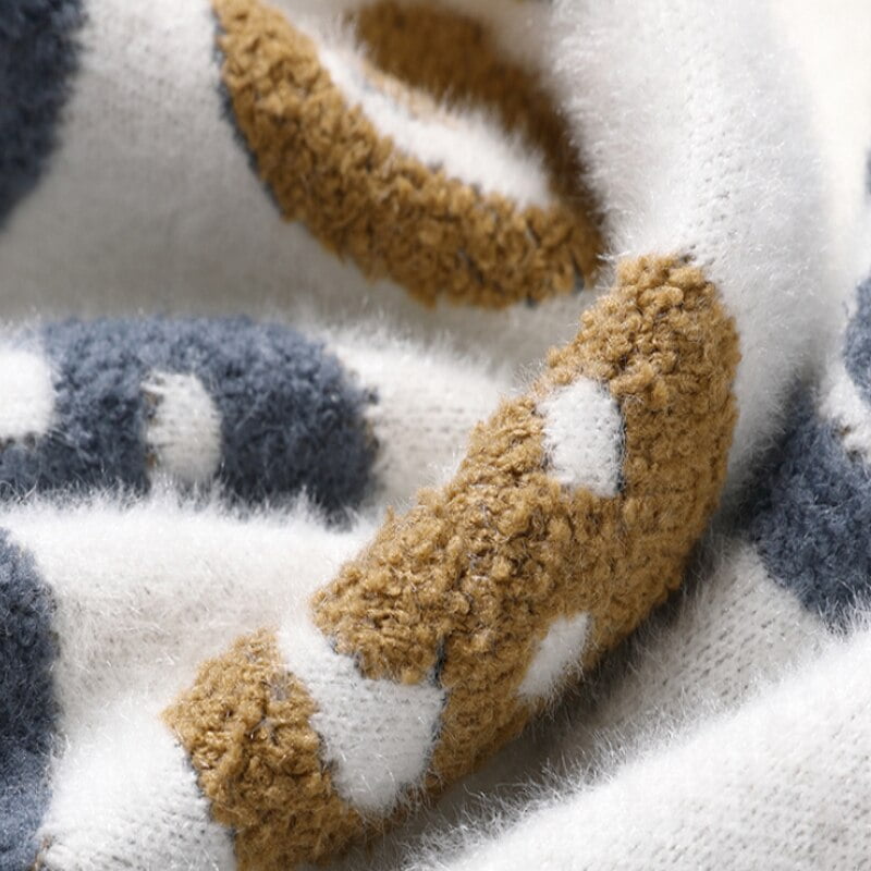 Nous vous recommandons de laver le pull à la machine, à une température maximale de 30 degrés Celsius. Évitez le blanchiment et le repassage à haute température. Pour le séchage, privilégiez un séchage à l’air libre afin de préserver les couleurs éclatantes du pull.