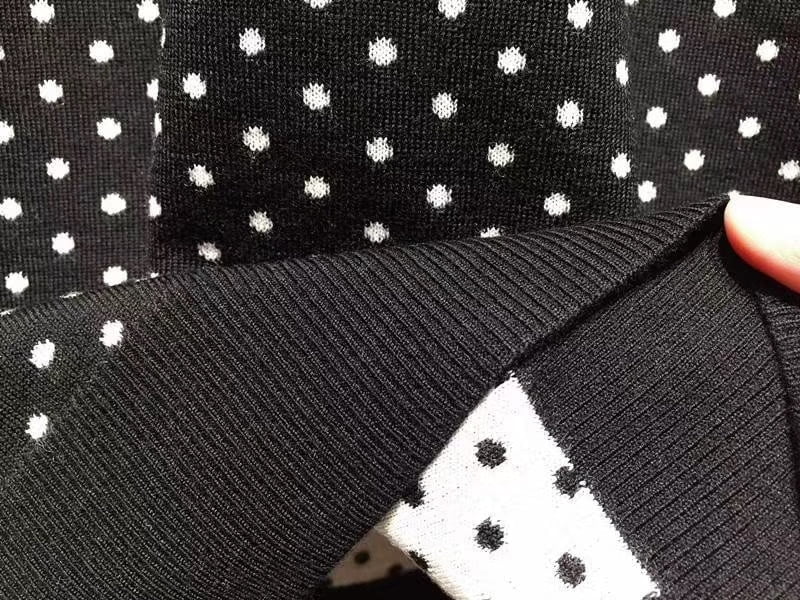 Achetez dès maintenant et laissez-vous séduire par la beauté intemporelle de ce pull à pois ondulé en laine jacquard.