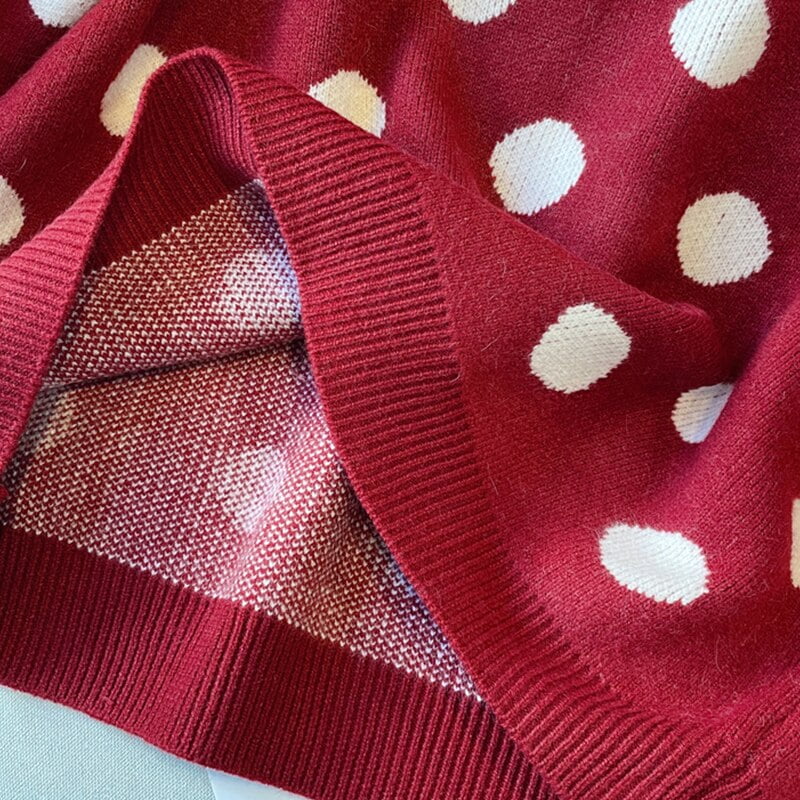 Affirme ton style produit avec ce pull tricoté à pois et sois prête à affronter les froids de l’automne et de l’hiver.