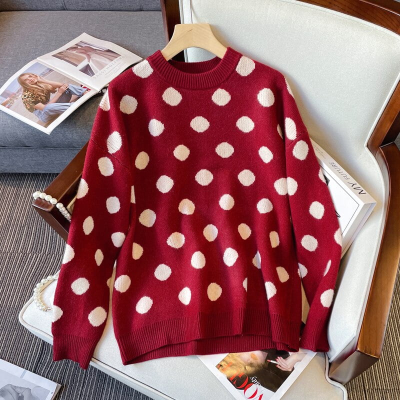 4 avis pour Pull Tricoté Décontracté À Pois, Couleur Contrastée, Pour Femmes, Taille M-3XL