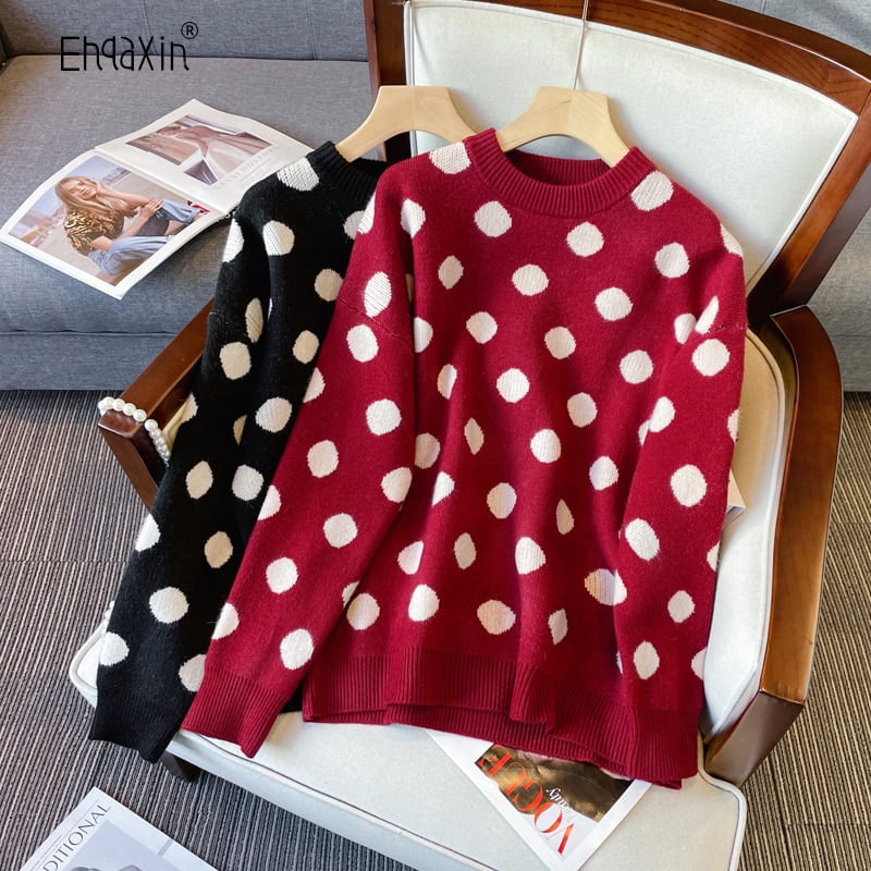 N’attendez plus, commandez dès maintenant et créez votre propre univers de mode avec notre Pull Tricoté Décontracté À Pois, Couleur Contrastée, pour femmes, taille M-3XL.