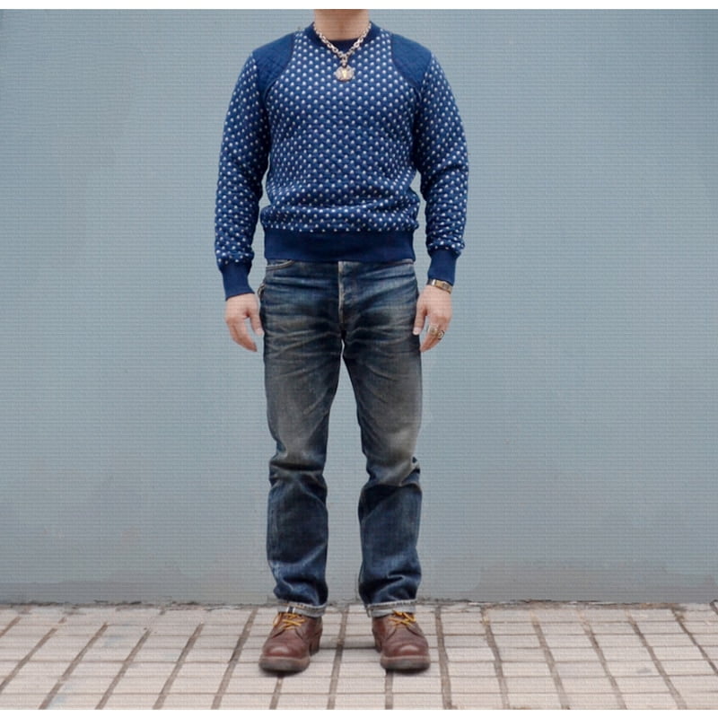 1 avis pour Pull Vintage Étoile Ras Du Cou Homme Indigo – Amekaji
