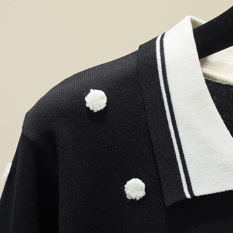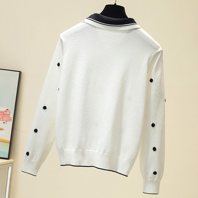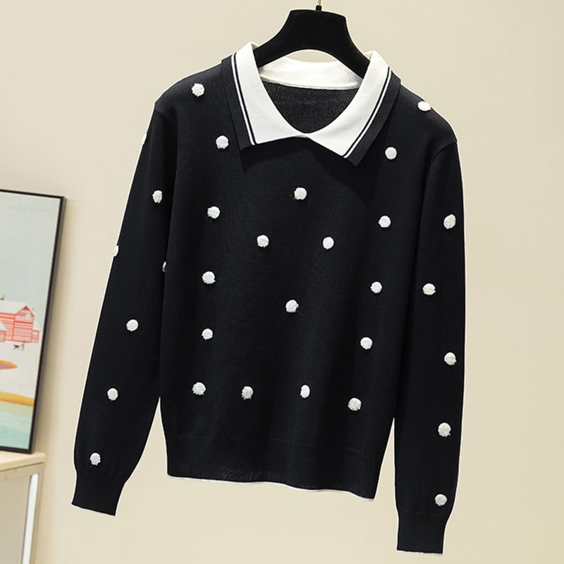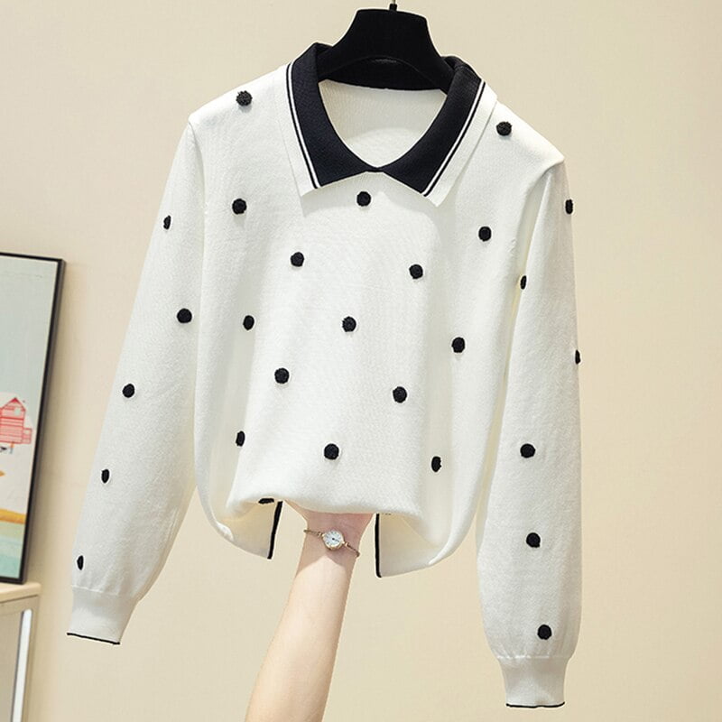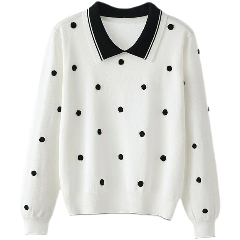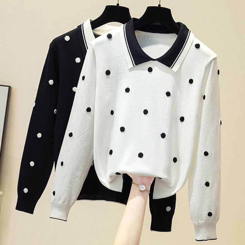 3 avis pour Pull-Over Pois Noir Femme Tricoté Col Polo