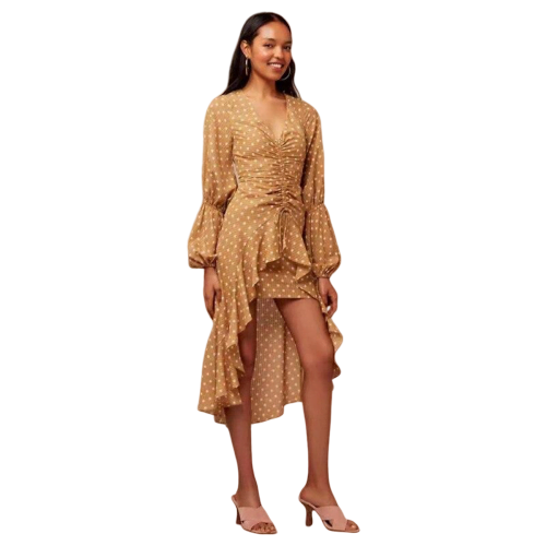 Alors qu’attendez-vous ? Faites-leur voir de quel bois vous vous chauffez et commandez dès maintenant cette Robe Longue Or À Pois Blanc. 💃🔥