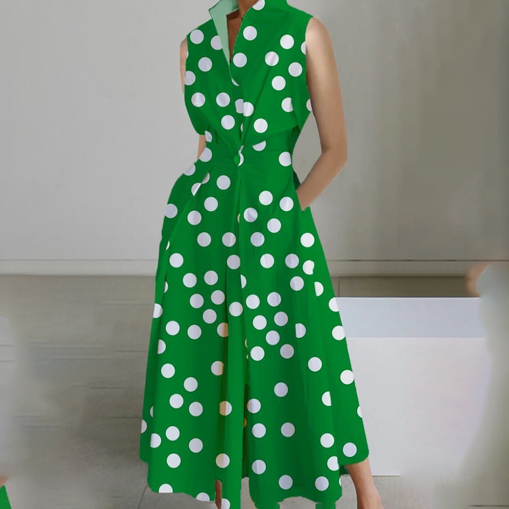 Cette robe de soirée élégante pour femme présente un motif à pois et un col en V. Idéale pour l’été 2023, elle est à la fois décontractée et à la mode.