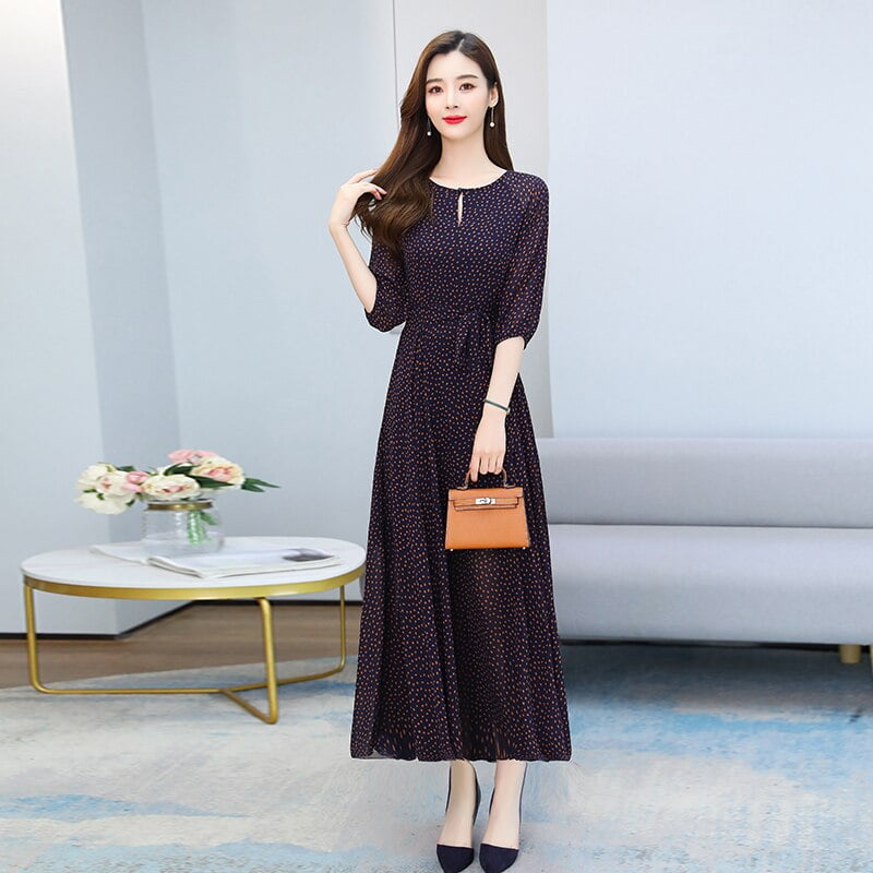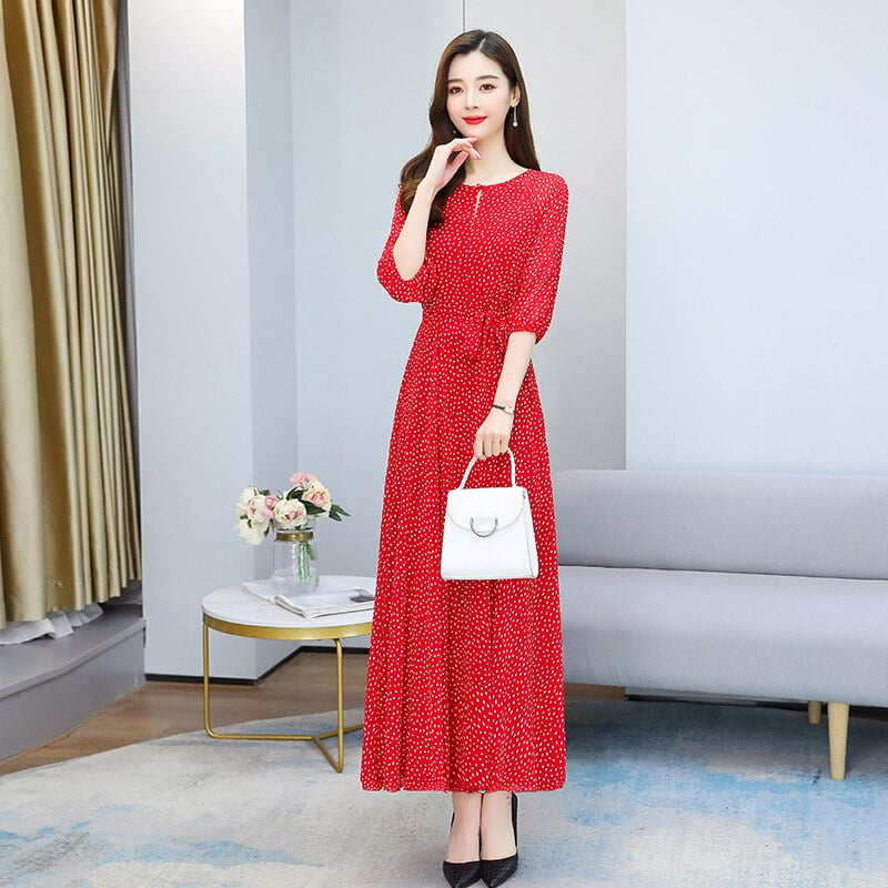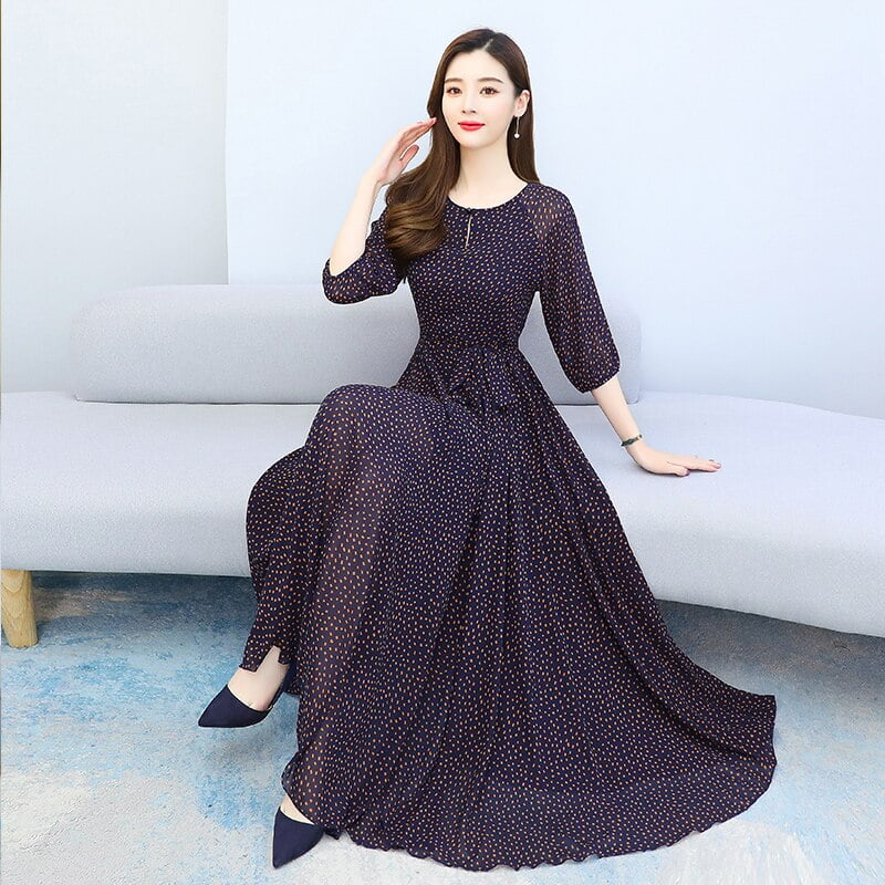 Cette robe de soirée en mousseline de soie est une tenue de plage Maxi au style Boho et Vintage. Elle est élégante, moulante et adaptée pour le printemps-automne 2023.