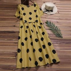 Avec cette Robe Longue A Pois Plissée, vous allez faire tourner les têtes et réveiller la Marilyn Monroe qui sommeille en vous. 🌟 Vous avez raté votre gâteau au chocolat ? Pas de soucis, personne ne le remarquera avec une robe aussi hypnotique ! 👗 Vos peurs de ne pas être à la hauteur s’envoleront comme par magie, car cette robe est un véritable bouclier anti-doutes. Et pour ceux qui osent encore critiquer votre sens du style, ils seront bien vite réduits au silence devant tant d’élégance. Alors n’hésitez plus et offrez-vous ce petit bijou de mode ! 💃🎀