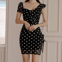 Bénéficiant d’ un style formidable et intemporel, votre Robe Noire Chic et Sobre De Soirée à Pois est un classique pour dévoué des Robes.