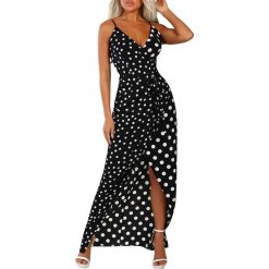 2 avis pour Robe Longue A Pois Noire Fendue