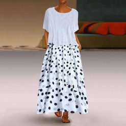 Cette robe à pois grande taille est tout simplement incroyable. Je suis tellement heureuse d’avoir enfin trouvé une tunique longue qui me va à la perfection. Les pois apportent une touche vintage et féminine, tandis que la coupe flatteuse met en valeur mes courbes.