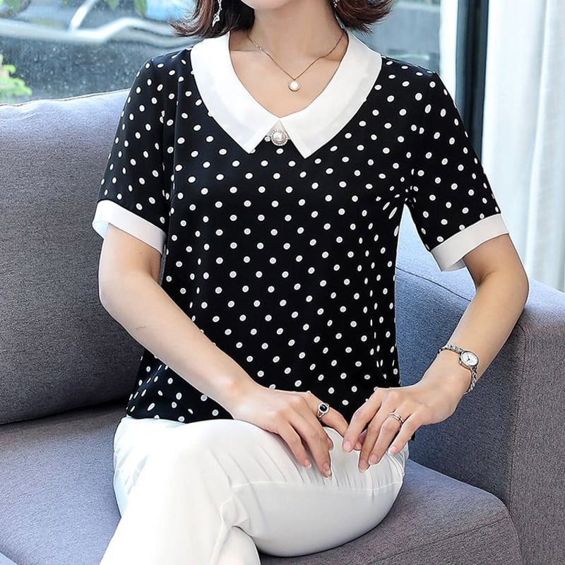 J’adore ce t-shirt vintage à manches courtes pour femmes, il est parfaitement coupé et les pois lui donnent un charme rétro irrésistible ! Je le recommande vivement à toutes les fashionistas !