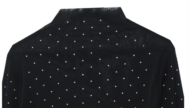 👗Découvrez le T-shirt à manches longues pour femme, maille noire, imprimé à pois, un vêtement qui allie élégance et confort. Ce haut sexy et mince est idéal pour toutes les occasions, que ce soit une soirée entre amis ou une cérémonie formelle. Son col roulé ajoute une touche de sophistication tandis que ses diamants scintillants attirent l’attention.