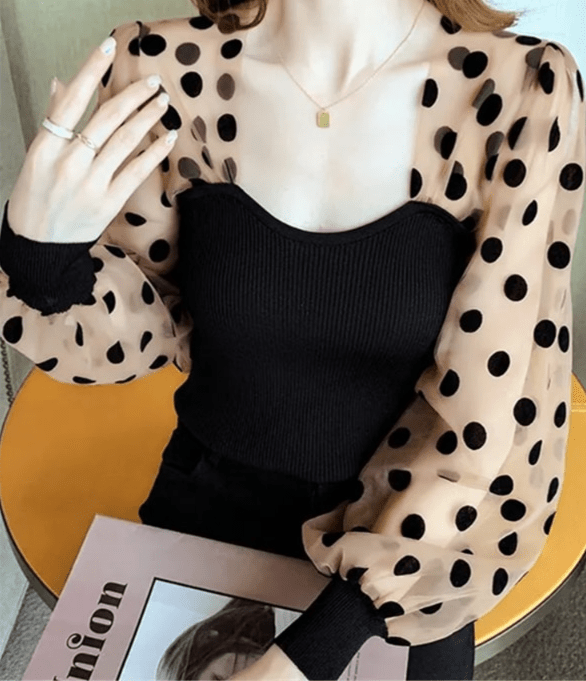 Avec ce T-shirt à manches longues pour femmes, chemisiers à bulles, haut court chic, maille à pois et patchwork, vous serez la reine de l’attraction. 🌟 Vous n’avez pas réussi votre dernier examen ? Pas de soucis ! Ce vêtement est là pour faire oublier vos petits échecs. 👑 Vos peurs d’être invisible dans la foule seront réduites comme une peau de chagrin grâce à son design astronomique qui ne laisse personne indifférent. Et si quelqu’un ose douter de votre sens du style, il suffit simplement de lui montrer ce chef-d’œuvre vestimentaire pour le clouer au silence. Alors qu’attendez-vous? Faites taire les jaloux en un clin d’œil avec cette pièce unique! 💃🔥