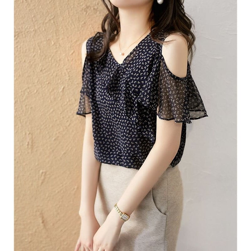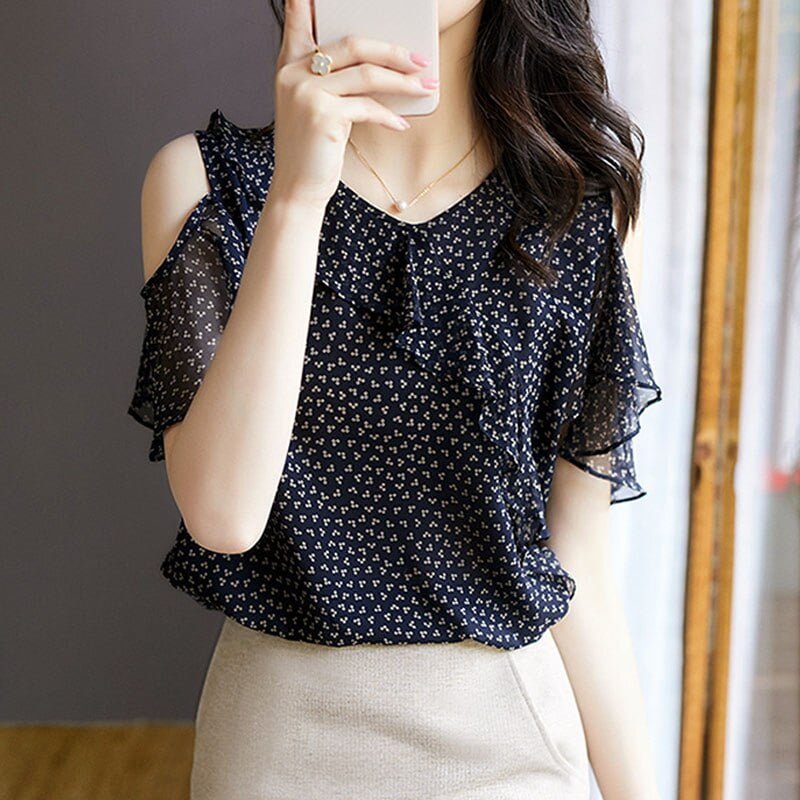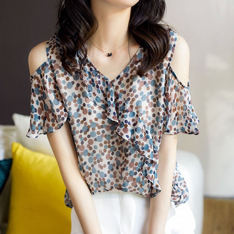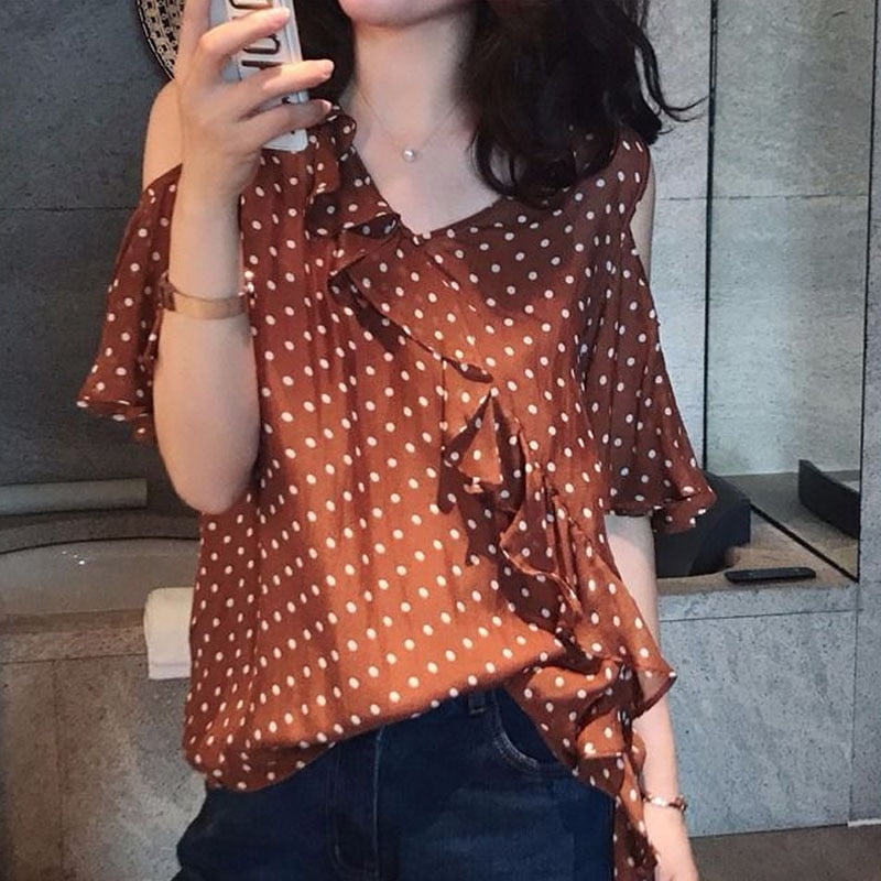 5 avis pour T-Shirt Volants Irréguliers Mousseline Pois Femme