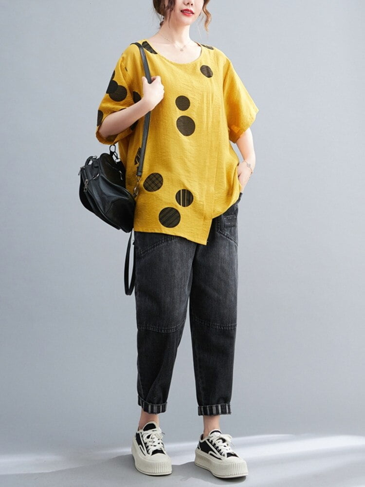 Ce T-Shirt Coton Imprimé Pois Femmes est l’arme de séduction massive que vous ne saviez pas qu’il vous fallait. Vous avez raté votre dernier rendez-vous ? Pas de soucis, c’était sûrement à cause de votre ancien t-shirt sans pois. 🙈 Peur de passer inaperçue lors de votre prochaine soirée ? Avec ce t-shirt, vous serez le centre de toutes les attentions. Vous doutez de votre sens du style ? Ce t-shirt à pois est la preuve que vous avez du goût. Et pour celles qui vous critiquent, laissez-les jeter des pierres, vous, vous serez trop occupée à briller. 💁♀️💅 Alors, qu’attendez-vous pour ajouter ce t-shirt à votre garde-robe ? C’est le moment de faire des jalouses !