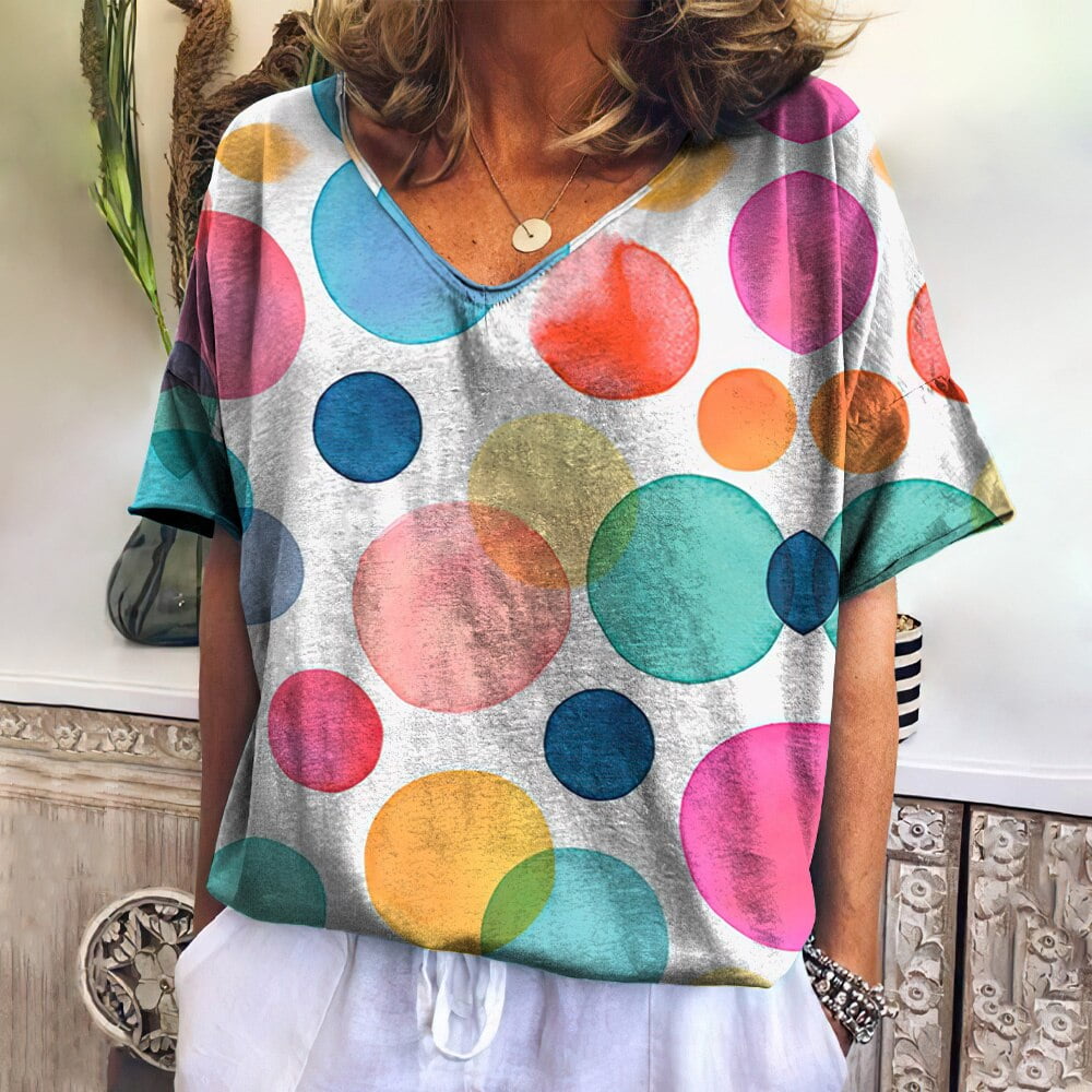 Excellent t-shirt pois, parfait pour un look coloré et décontracté. Utilisé lors d’un pique-nique, il a attiré tous les regards. Seul léger bémol : la taille pourrait être légèrement ajustée.