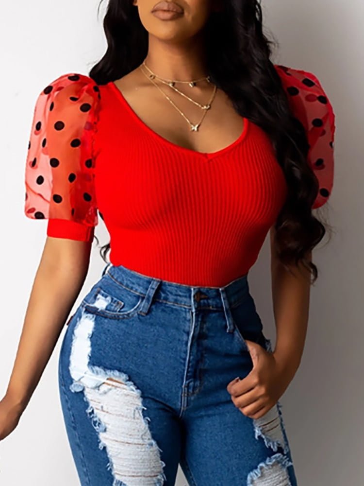 2 avis pour T-Shirts Manches Bouffantes Col V