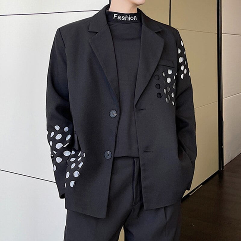 Cette veste de costume homme se distingue par son motif ajouré à pois qui ajoute une dimension originale à votre tenue. Que vous la portiez avec un pantalon assorti ou avec un jean pour un style plus décontracté, cette pièce versatile saura attirer tous les regards.😎